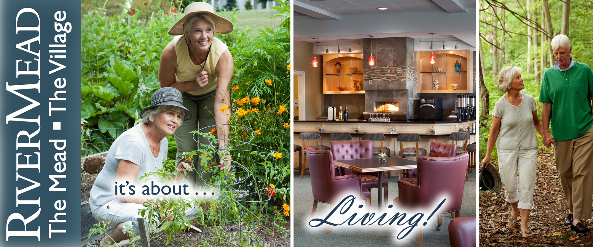This is RiverMead, one mission, two neighborhoods, a walking distance apart - The Mead and The Village - combining 40 cottages,117 apartments and 24 Villas on 90 acres of winding paths, a river, lawns and woods- here for you and the lifestyle you desire. Whatever services or amenities you can envision, we have them . . . and with RiverMead comes the knowledge that continuing on-site health care options offer absolute peace of mind.  RiverMead can be your home . . . always.